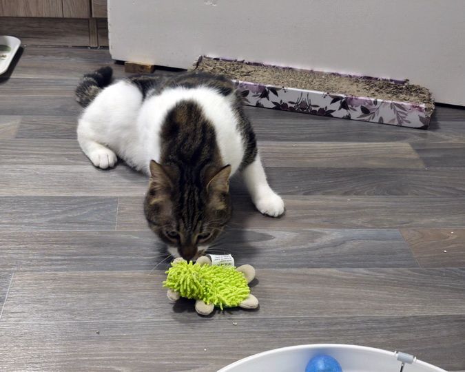 Seit Mitte Dezember lebt Gizmo auf unserer Station in Plankstadt und hat sich hier schnell zu einem kleinen Schlawiner mit Charme entwickelt. Besonders liebt er es, mit seinen Katzenfreunden zu raufen, zu spielen und Unsinn zu machen. Ein absolutes Highlight für ihn ist seine Kugelbahn – damit kann er sich stundenlang beschäftigen und zeigt dabei, wie viel Köpfchen und Begeisterung in ihm stecken.